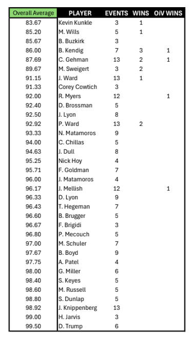 Cash prizes and trophies for Low Gross score and Low Net score. Low Net score will be determined by Callaway scoring system. Cash prizes paid to the top three finishers in both categories.